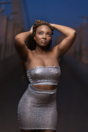 Feeling sexy? Well the LUSTER 2-piece set will make you the star of the room! This glitzy set is perfect for that hot new roof top club or a Las Vegas night on the strip.