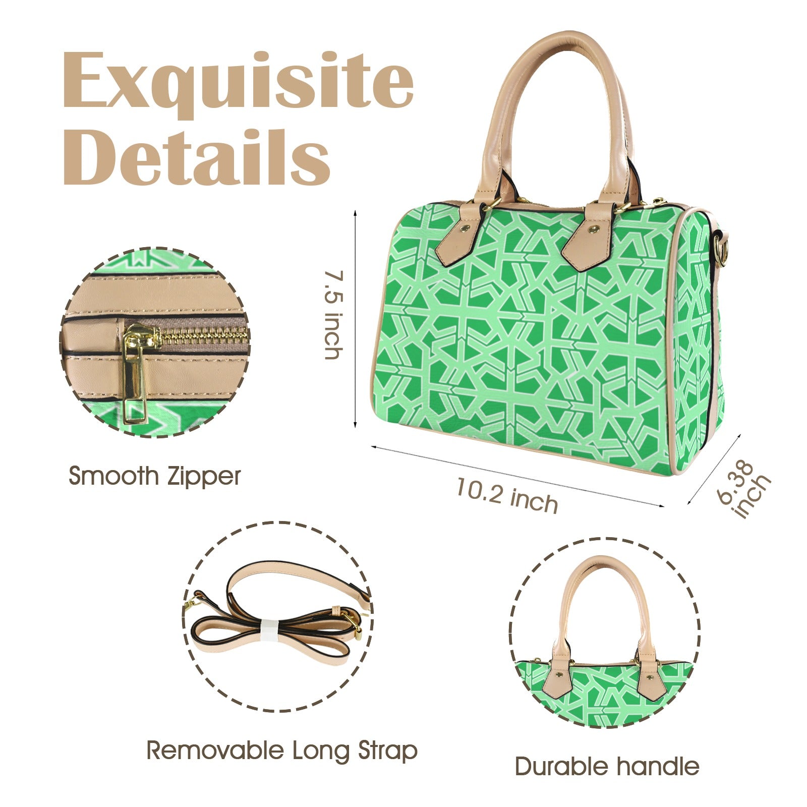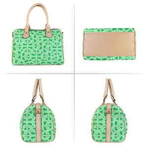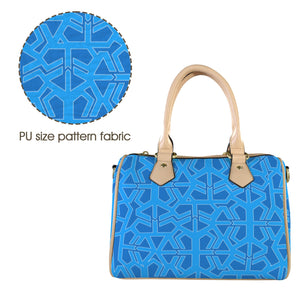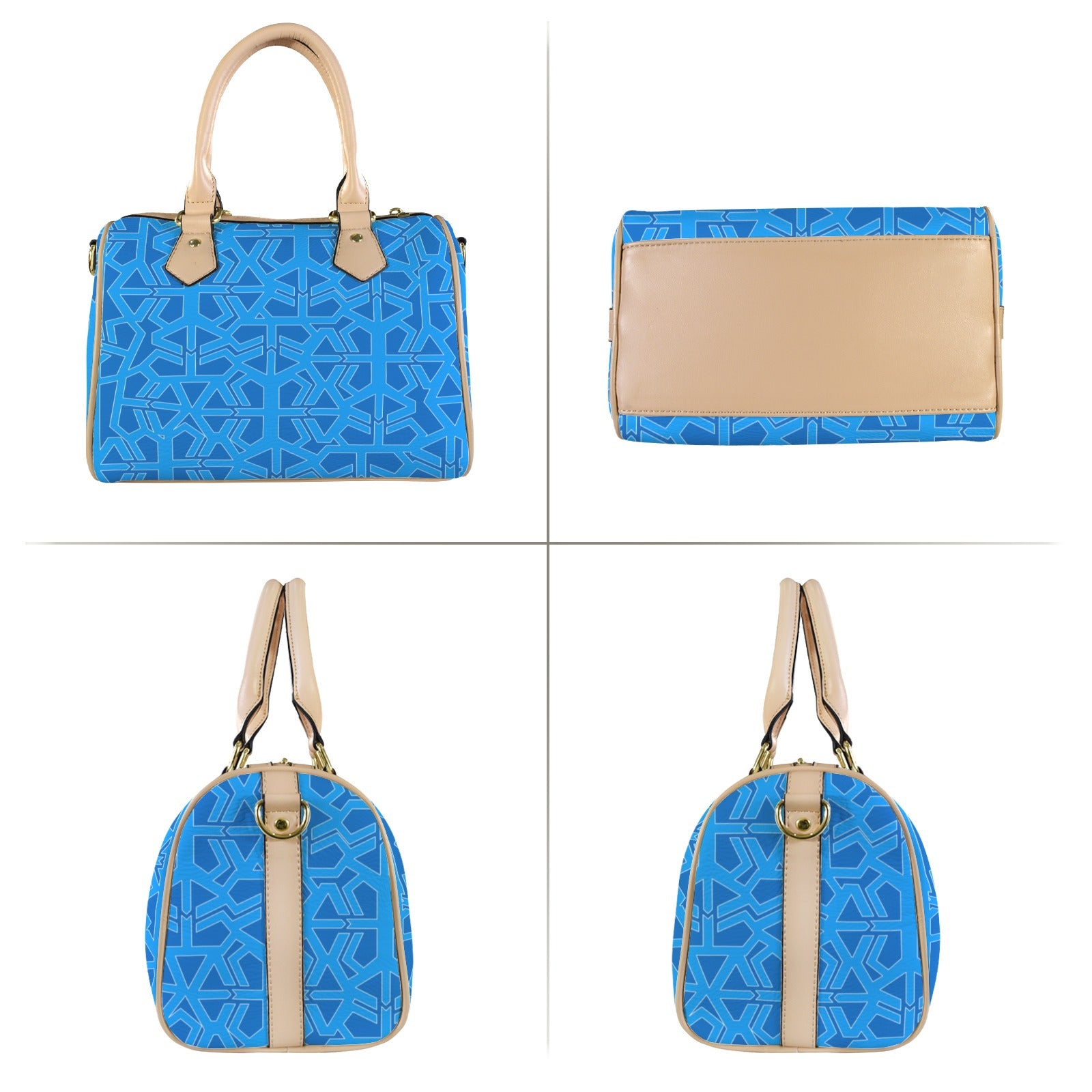 The Skyline Barrel Boss Bag is your new power accessory. With its structured silhouette and all-over geometric print in striking cobalt blue, this custom handbag delivers style and function in every detail. Creamy vegan leather trim and handles balance the boldness with sophistication, while the spacious interior and removable crossbody strap keep it versatile for your 9-to-5 and beyond.