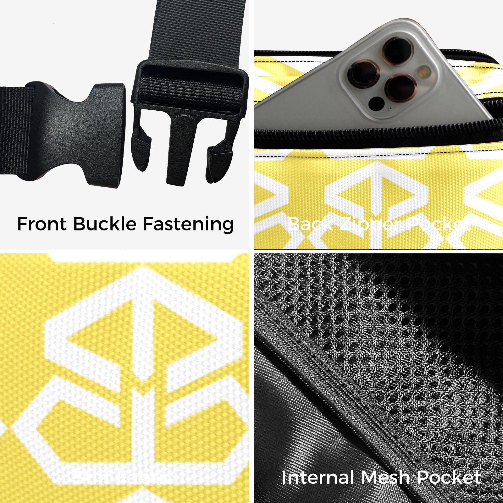Adjustable strap (up to 52.5") for waist or crossbody wear